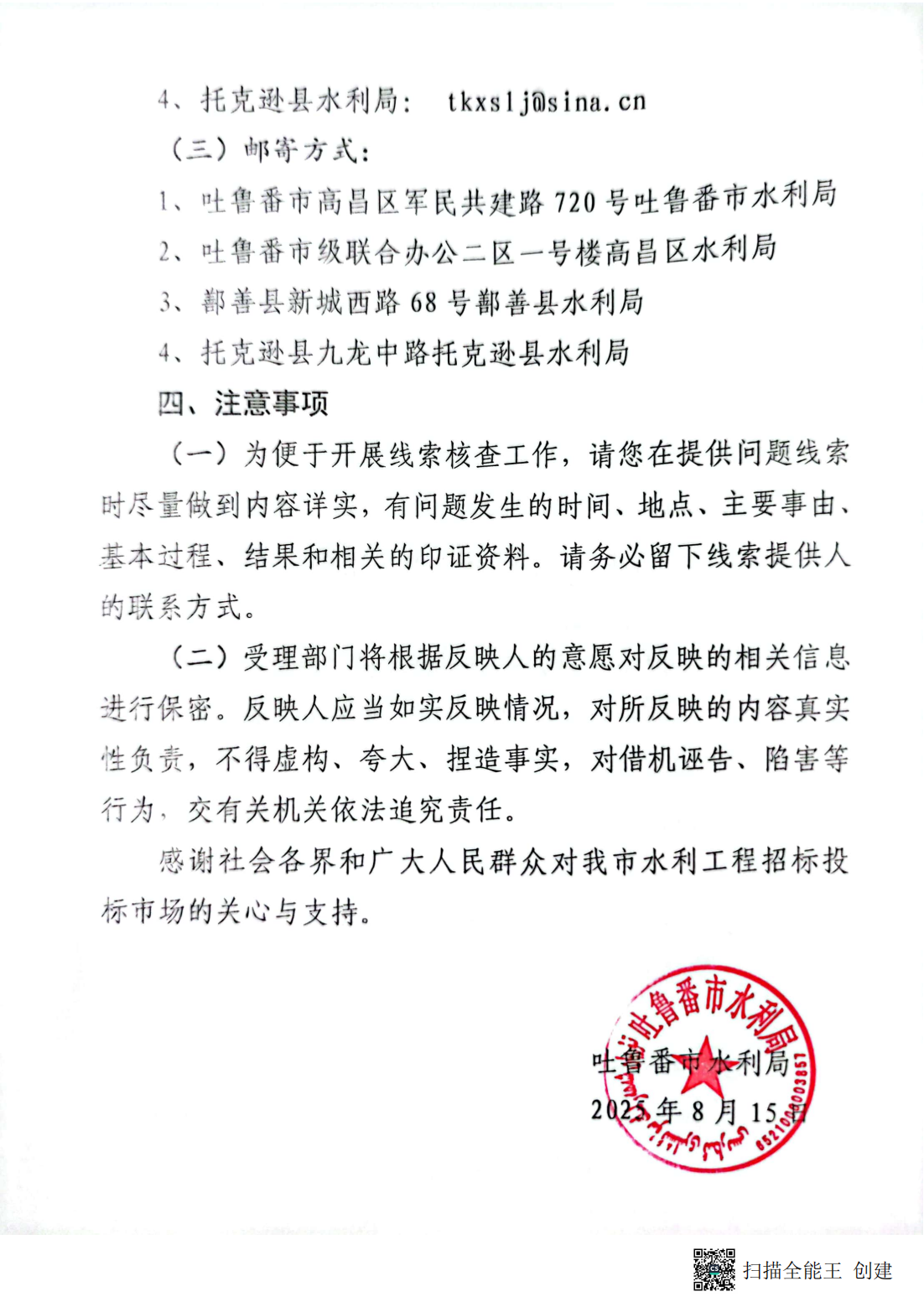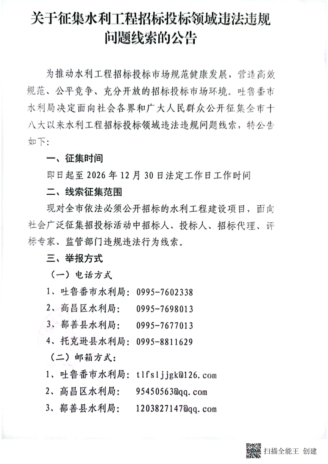 关于征集水利工程招标投标领域违法违规问题线索的公告